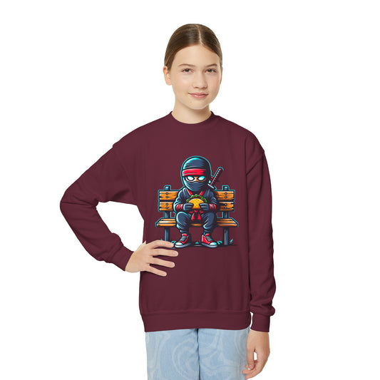 Back to School Youth Crewneck Sweatshirt - Fun Ninja Eating Taco Graphic